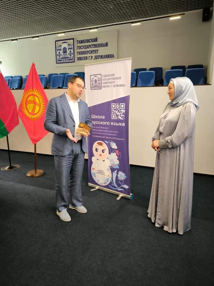 Россия Федерациясынын Тамбов шаарында Н.г.Державин атындагы Тамбов мамлекеттик университетинде “Орус тили жана орус элинин маданиятынын мектеби” аттуу маданий-билим берүү долбоору башталды. Долбоор 2024- жылдын 20-августунан 27-августка чейин өткөрүлөт, анын катышуучулары Өзбекстан, Казакстан, Белоруссия, Кыргызстан жана башка өлкөлөрдөн келген орус тили мугалимдери. Кыргызстандан барган делегациянын курамына Баткен мамлекеттик университетинин орус тили жана адабияты мугалимдери фил.и.к., доцент Ш. Ж. Эржигитова, жана Ыйман гимназиябыздын окутуучусу Г.К. Саматова Баткен мамлекеттик университетинин атынан катышууда.